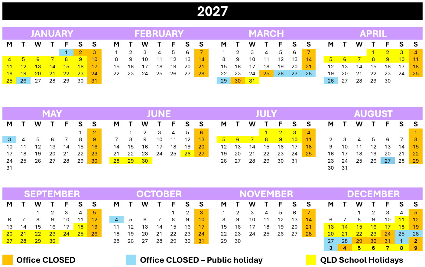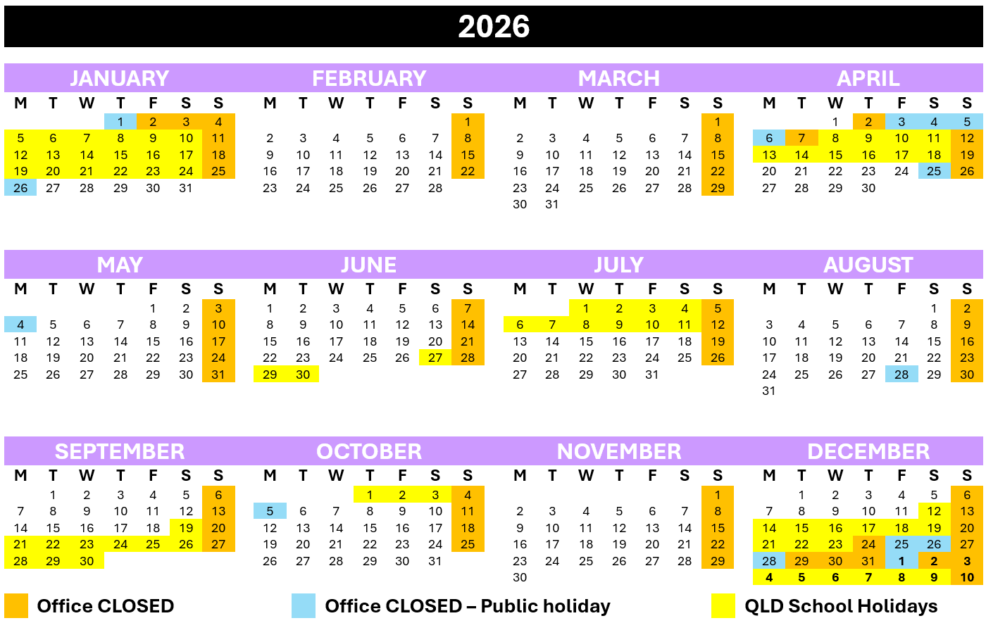 KEY DATES & CLOSURES