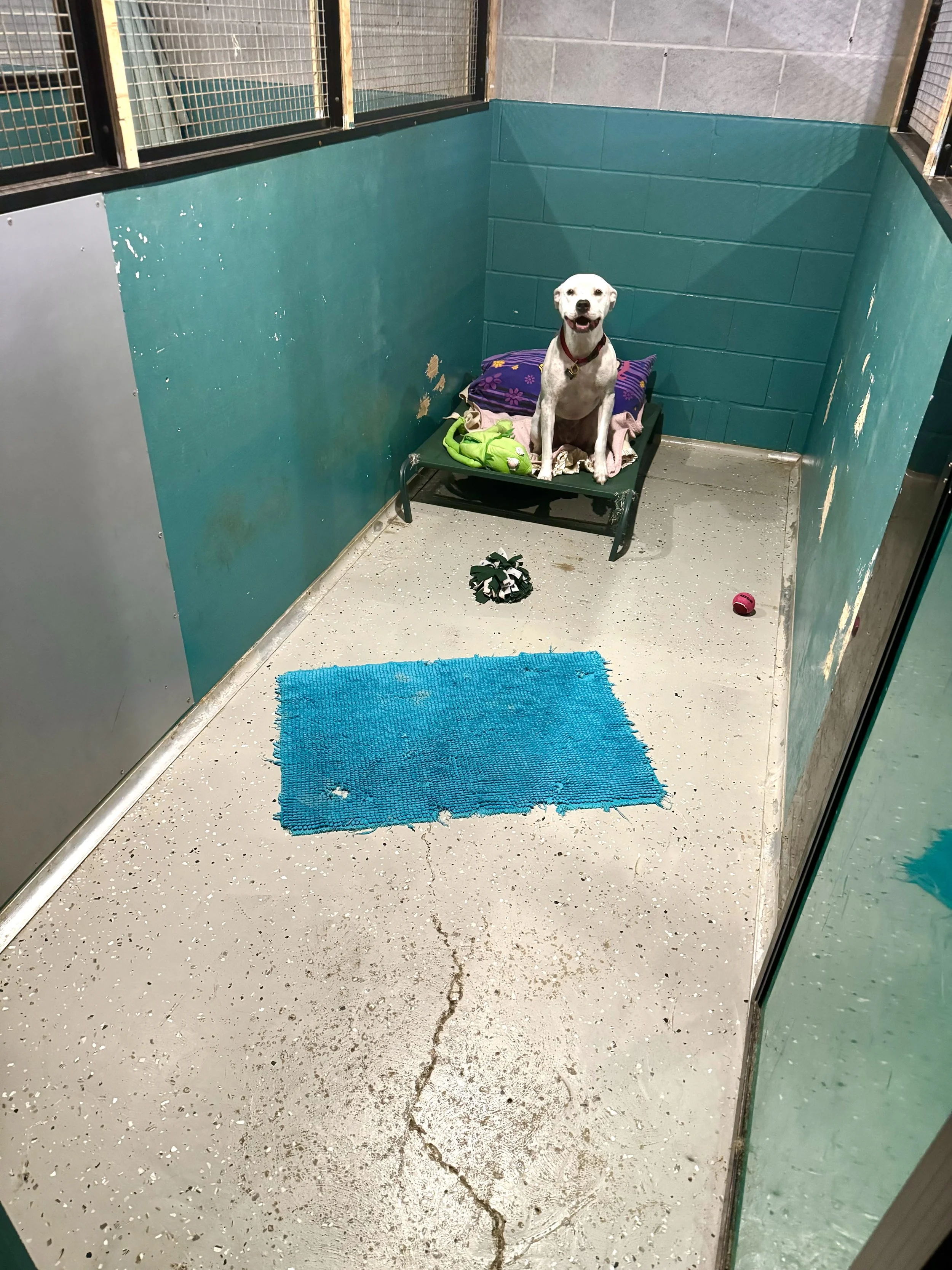 Toileting mats are provided in every kennel and play yard for hygiene and convenience.